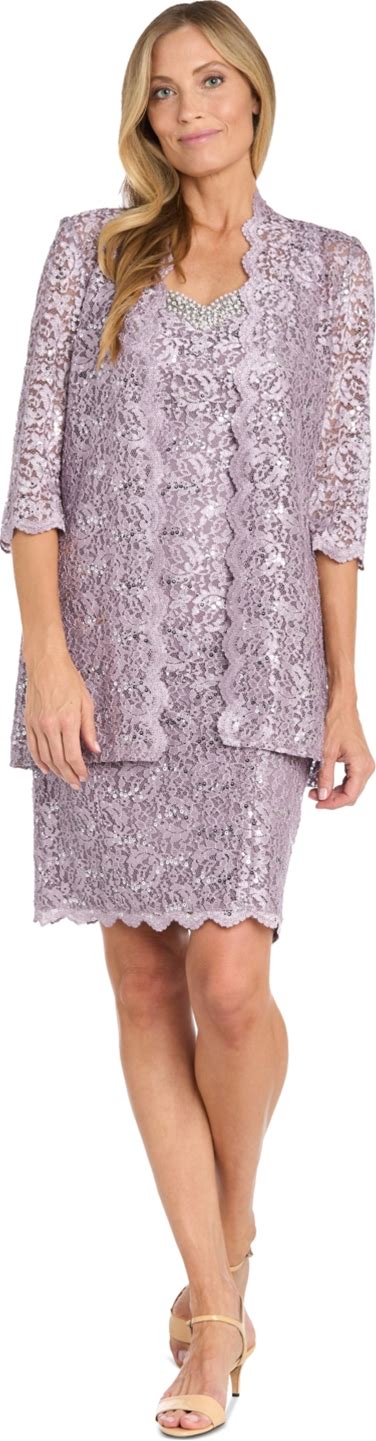 R & M Richards Women's 2 Pc. Sequin-Lace Scalloped Jacket Dress - Lilac - Size 12