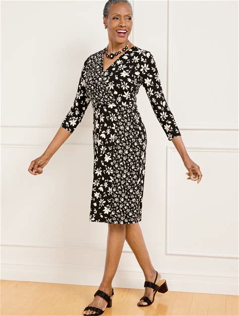 Bicolor Ditsy Wrap Jersey Dress - Black/Ivory - XS Talbots