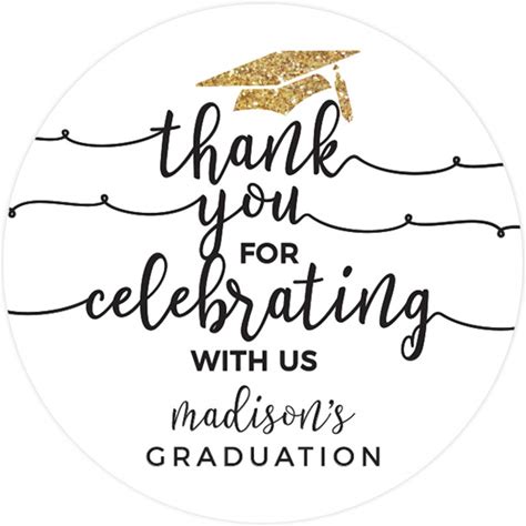 Andaz Press White And Gold Glittering, Personalized Graduation Circle Labels, Thank You For Celebrating With US, 40-Pack, Graduation Stickers Custom