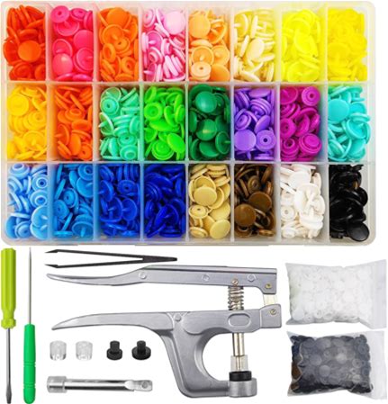 Eutenghao 1440Pcs Plastic Snap Buttons No-Sew Snap Fasteners T5 Snaps With Snaps Pliers Kit For Clothing Sewing,Rain Coat,Bibs,Clothes Crafting(24