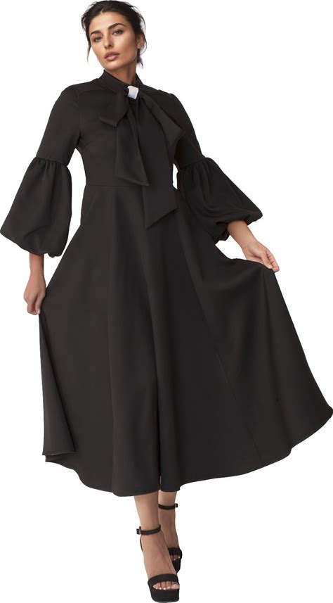 Modest Clergy Dress With Bell Sleeves And Tie Collar - 4846 - Especially Yours BLACK/WHITE / 12