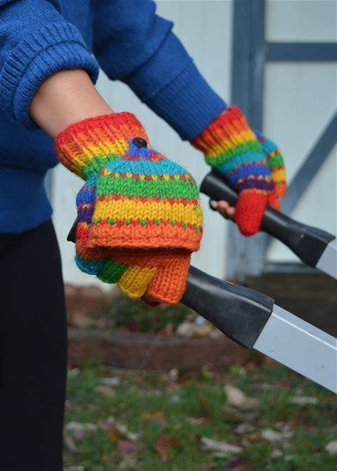 Rainbow Hand Knit Convertible Mitten, Fully Fleece Lined Mittens. Mitten With Fleece Lined Thumbs. Fleece Lined.Comfy And Warm.