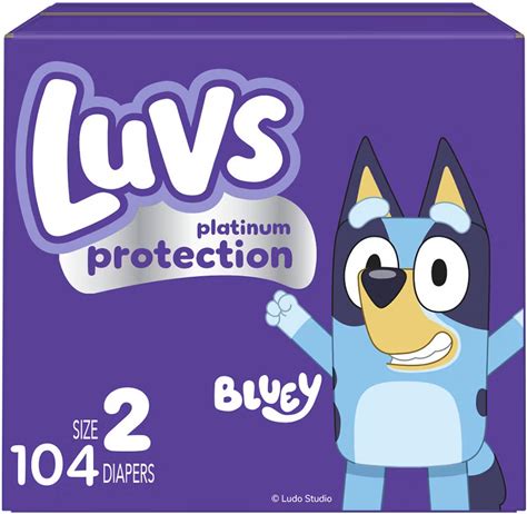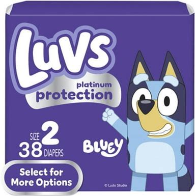 Luvs Diapers Platinum Protection Size 2 Bluey Baby Diapers 104 Count Box. Luvs. Purple. Disposable Diapers. 030772158173.