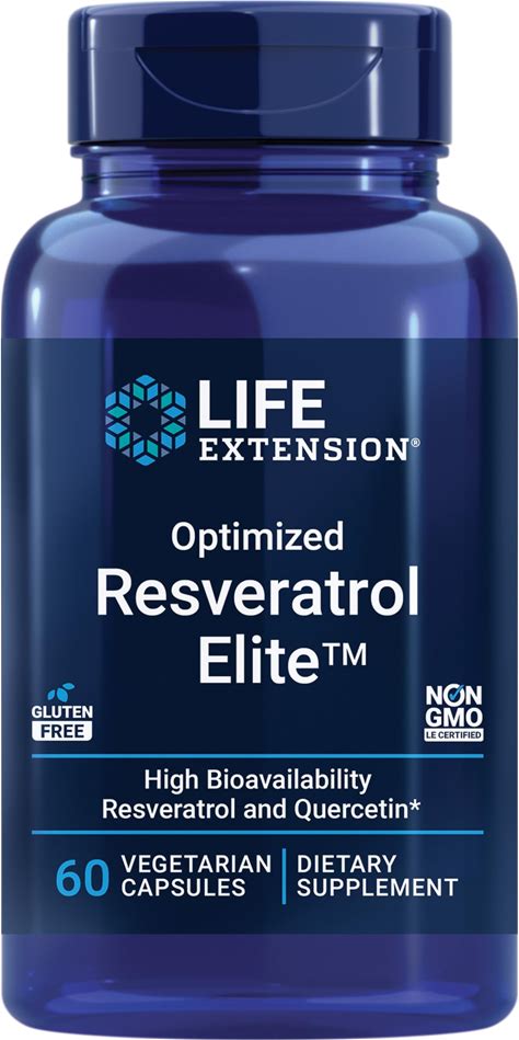 Life Extension Optimized Resveratrol Elite, Trans-Resveratrol, Quercetin, Healthy Aging, Heart Health, Brain Health, Oxidative Stress, Gluten-Free,